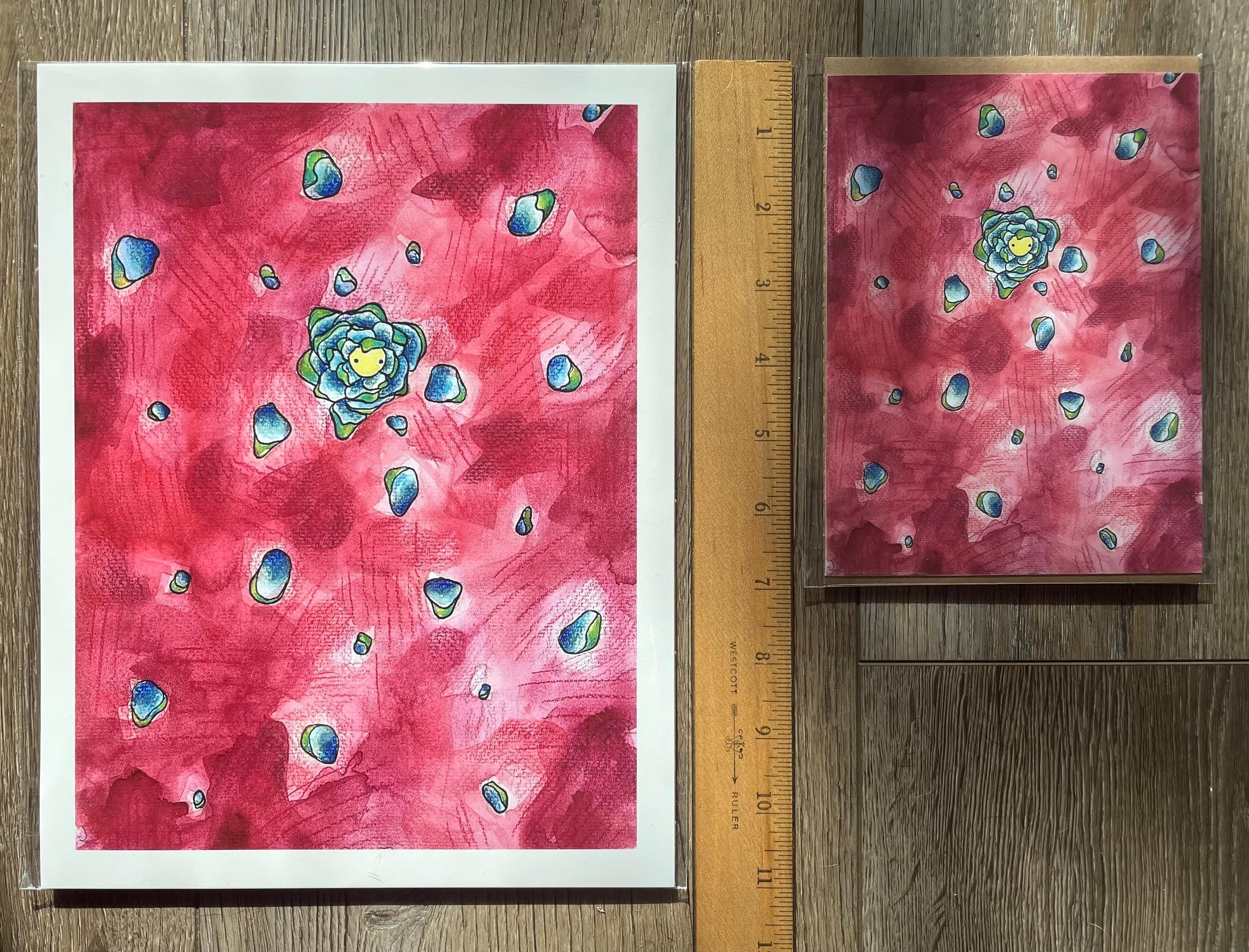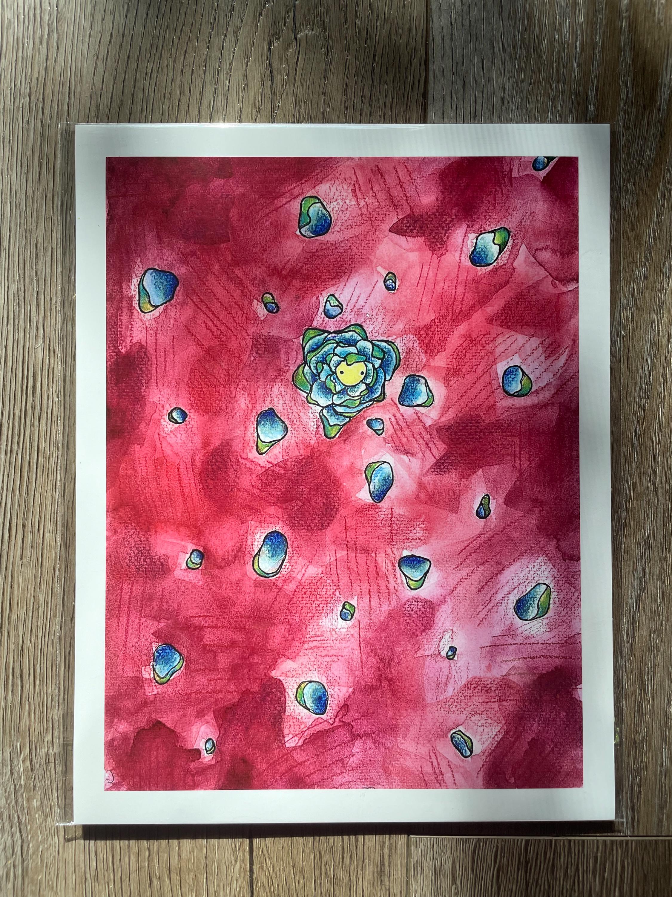 A mid-size vibrant art print born from my original watercolor, ink, and colored pencil drawing. <3